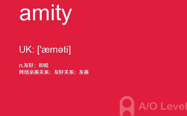 课窝a/o-level考试网上提供了许多信息可以供考生们参考,比如考生需要在此网站报名,打印准考证,或者搜寻与英国a-level考试内容相关的资料等等。考生如果想在短时间内,迅速掌握a-level考试资讯,就需要合理运用此网站的信息。今天带来的是a-level考试词汇之amity的详细介绍。如果您想了解alevel数学教材,新加坡a水准预备班,alevel简介,英国中学alevel排名等关于a-level考试的相关资讯,请继续浏览并关注课窝a/o-level考试网。