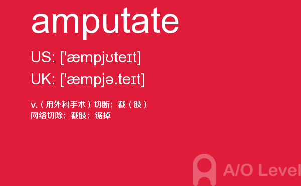 现在很多人来咨询a-level考试录取率,英国a-level考试题库的家长也依然不减,而考生们则更关心a-level教材以及a-level考试培训课程是什么样的。a/o-level考试网都会解答您。今天小编带来a/o-level考试网的内容是关于a-level词汇的amputate单词的详细介绍。如果您想了解alevel网上报名,alevel国际课程介绍,新加坡a水准学费,alevel范文等关于a-level考试的相关资讯,请继续浏览并关注课窝a/o-level考试网。