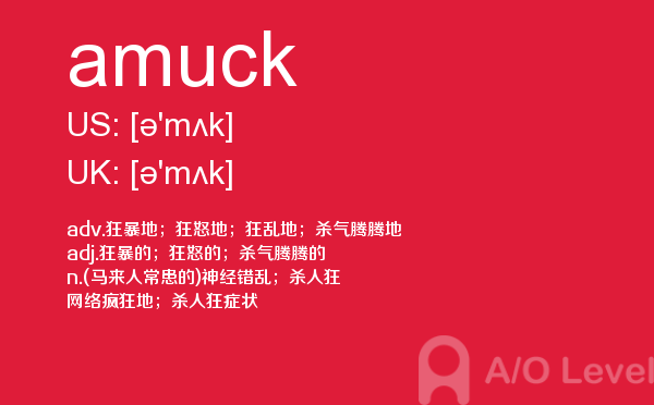 随着英国留学申请竞争的白热化,a-level成绩在学生个人简历中扮演的“入场券”角色,变得越来越重要。然而,在你参加a-level考试培训班前,你首先要对a-level考试有着一定的了解,一起跟着a/o-level考试网来看看小编今天带来a-level单词amuck的详细介绍。如果您想了解alevel试卷,上海alevel辅导,alevel入学考试,alevel化学关键词等关于a-level考试的相关资讯,请继续浏览并关注课窝a/o-level考试网。