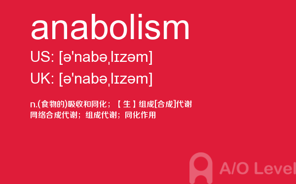 英国a-level学校,从教学质量上来看私立学校更占优势,大部分中国留学生也选择私立学校来读,不过一般都是提前一年来申请学校。中国目前也有20几所a-level学校,每年也同样有走进剑桥牛津等世界顶级大学的学生。所以在国外和在国内都可以选择a-level学校来学习。在前面关于a-level选校的问题已经详细介绍过,那么今天a/o-level考试网小编主要想介绍的是a-level重难点词汇anabolism。希望对大家有帮助。如果您想了解alevel物理考a难吗,alevel时间,alevel零基础,alevel课程等关于a-level考试的相关资讯,请继续浏览并关注课窝a/o-level考试网。
