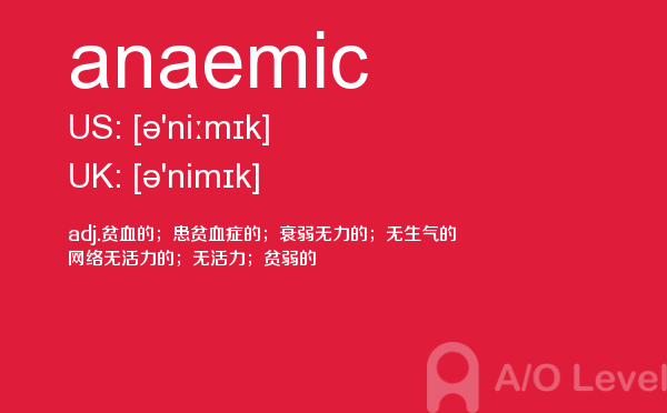 a-level课程包含70多门供学生选择,一般学生选择3至4门来学,中国学生在数学学科上有很大的优势,一般学生都会选择基础数学。学生选择课程时,一般要考虑现在自己的优势科目和将来的发展方向,即你想选择哪个大学、什么专业,从而根据他们的要求有的放矢地选课。关于alevel选课后续会详细介绍,下面带来a-level考试词汇anaemic的详细介绍。如果您想了解新加坡剑桥a水准考试,alevel报名时间,alevel补习,alevel等关于a-level考试的相关资讯,请继续浏览并关注课窝a/o-level考试网。