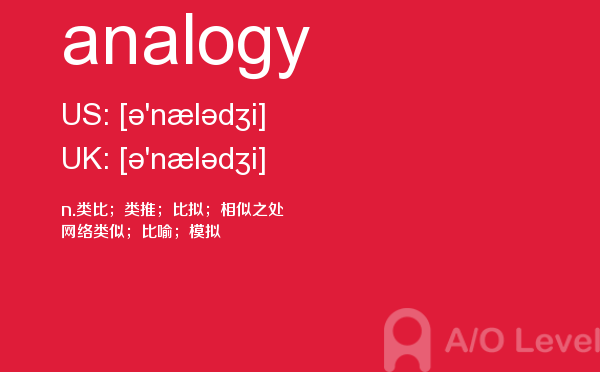 英国的大多数中学开设的alevel课程科目相当广泛,有文科、商科、经济、语言、数学、理科、计算、法律、媒体、音乐等。学生的alevel考试成绩及其所选修的a-level课程在很大程度上决定着能否进入理想的大学和学习所选择的学位课程。关于alevel考试alevel考试网会给大家带来和a-level考试相关的资讯,下面带来的是单词analogy的介绍,会对大家的a-level考试成绩有帮助。如果您想了解上海alevel课程,美国大学alevel,alevel高二全球统考时间,alevel入学要求等关于a-level考试的相关资讯,请继续浏览并关注课窝a/o-level考试网。