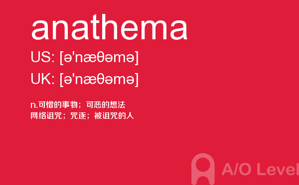 随着英国留学申请竞争的白热化,a-level成绩在学生个人简历中扮演的“入场券”角色,变得越来越重要。然而,在你参加a-level考试培训班前,你首先要对a-level考试有着一定的了解,一起跟着a/o-level考试网来看看小编今天带来a-level单词anathema的详细介绍。如果您想了解alevel真题搜索,alevel考场地址,alevel网上报名,alevel经济学大纲等关于a-level考试的相关资讯,请继续浏览并关注课窝a/o-level考试网。