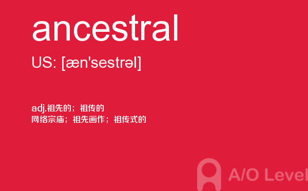 在a-level备考的过程中,想要冲刺到a-level写作的高分,相信大家都应该会知道,除了需要掌握a-level写作的一些技巧之外,优化文章中的词汇和句型也是冲刺高分的关键所在。也就是说,只有充分掌握了语法知识,才能让我们的的文章更为丰富形象。除了a-level写作,在a-level其他方面同学们也需要了解,下面课窝a/o-level考试网小编给大家带来a-level单词ancestral的介绍。如果您想了解alevel网上报名,alevel国际课程介绍,新加坡a水准学费,alevel范文等关于a-level考试的相关资讯,请继续浏览并关注课窝a/o-level考试网。