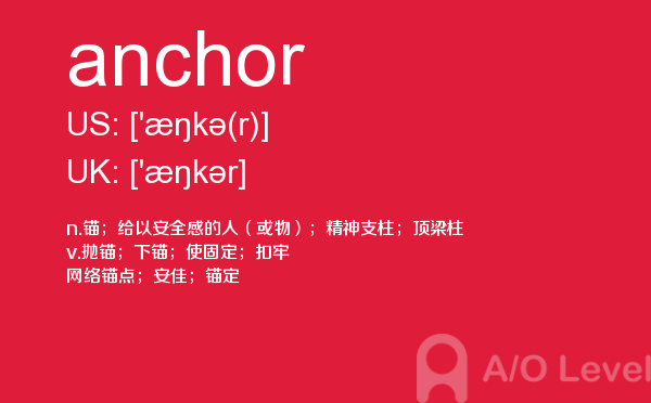 a-level(general certificate of education advanced level ),英国高中课程,是英国全民课程体系,是英国普通中等教育证书考试高级水平课程,也是英国学生的大学入学考试课程。今天alevel考试网小编给大家带来的alevel考试单词anchor的详细介绍。希望大家能够认真的阅读。如果您想了解alevel物理真题,如何成为alevel老师,英国读alevel,为什么要考alevel课程等关于a-level考试的相关资讯,请继续浏览并关注课窝a/o-level考试网。