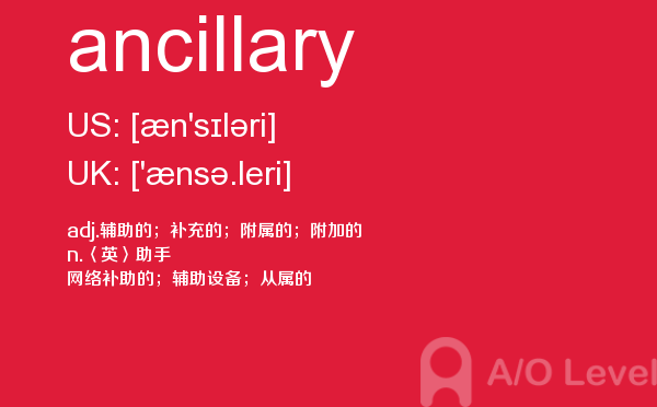 对于a-level考试,我们一再强调要加强a-level考试真题实战,多做英国a-level考试真题。放松一下,跟着a/o-level考试网来积累一下a-level考试中你会用到的单词ancillary,对你的a-level考试会有很大的帮助。如果您想了解爱德思alevel答案,alevel词汇下载,中国alevel考点,自学alevel申请大学等关于a-level考试的相关资讯,请继续浏览并关注课窝a/o-level考试网。