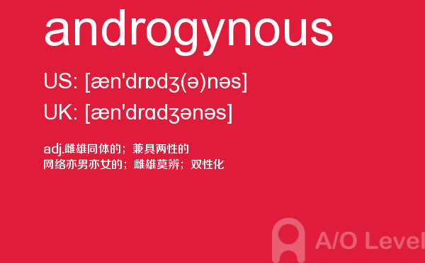 目前,a/olevel逐渐为人所熟知,很多学生都会主动了解alevel考试流程。同时也会抱怨a-level英语题比较难,任务重。那现在我们就放松一下,跟着a/o-level考试网小编来看看a-level考试中要积累的单词androgynous,认真的学习积累。如果您想了解alevel考试如何退考,alevel自学考几门,英国高考alevel,墨尔本大学alevel申请条件等关于a-level考试的相关资讯,请继续浏览并关注课窝a/o-level考试网。