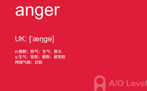 a-level课程证书被几乎所有英语授课的大学作为招收新生的入学标准。 在中国开设a-level课程旨在为中国学生提供进入国外大学的有效途径,具体目标为:培养在国内初高中成绩优秀的学生进入世界顶尖大学;培养在国内初高中成绩中等的学生进入世界一流大学;培养在国内初高中成绩一般的学生考取适合自己的大学。今天alevel考试网小编给大家详细解析a-level考试单词anger。如果您想了解alevel经济学,a水准考试要求,alevel化学笔记,alevel预测等关于a-level考试的相关资讯,请继续浏览并关注课窝a/o-level考试网。