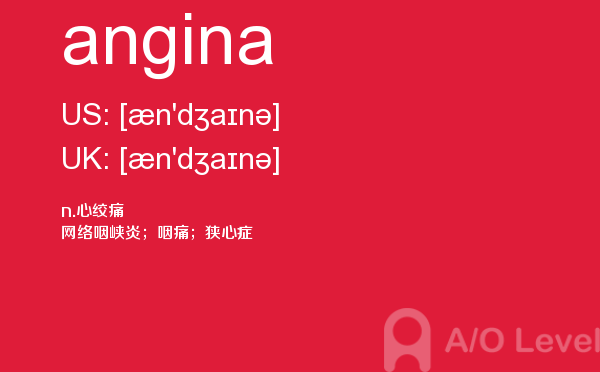 英国留学考试a-level考试考什么?a-level考试题型一定要注意积累和总结。课窝a/o-level考试网小编每天会给大家带来a-level考试的相关资讯,今天带来a-level单词angina的解析,希望大家认真的积累a-level考试词汇。如果您想了解alevel词汇表,alevel生物难度,申请新加坡a水准,alevel作文等关于a-level考试的相关资讯,请继续浏览并关注课窝a/o-level考试网。