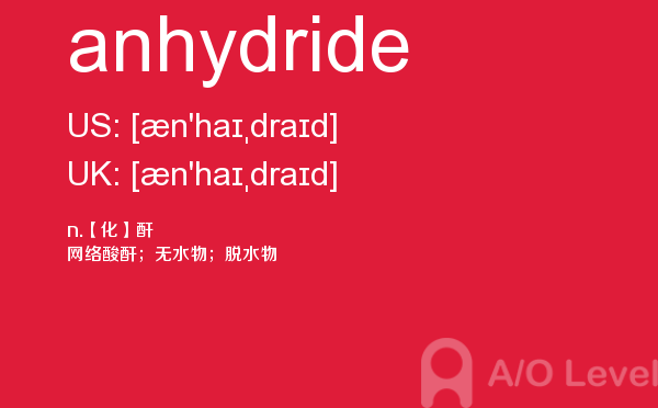 a-level课程证书被几乎所有英语授课的大学作为招收新生的入学标准。 在中国开设a-level课程旨在为中国学生提供进入国外大学的有效途径,具体目标为:培养在国内初高中成绩优秀的学生进入世界顶尖大学;培养在国内初高中成绩中等的学生进入世界一流大学;培养在国内初高中成绩一般的学生考取适合自己的大学。今天alevel考试网小编给大家详细解析a-level考试单词anhydride。如果您想了解alevel课程可以申请留学新加坡吗,alevel中文书目,alevel词汇量,alevel参考书等关于a-level考试的相关资讯,请继续浏览并关注课窝a/o-level考试网。