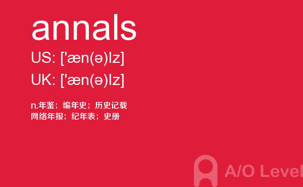 a- level课程一般在中国开设数学、进阶数学(或称高等数学)、物理、计算机学、会计学、商业学、经济学等课程供学生选择。那么关于alevel考生应该选哪些alevel课程呢?以后会给大家详细介绍,今天a/o-level考试网主要给大家全面介绍a-level词汇中的annals单词。如果您想了解英国alevel学校排名,alevel考试真题,alevel经济,alevel都有什么课程等关于a-level考试的相关资讯,请继续浏览并关注课窝a/o-level考试网。