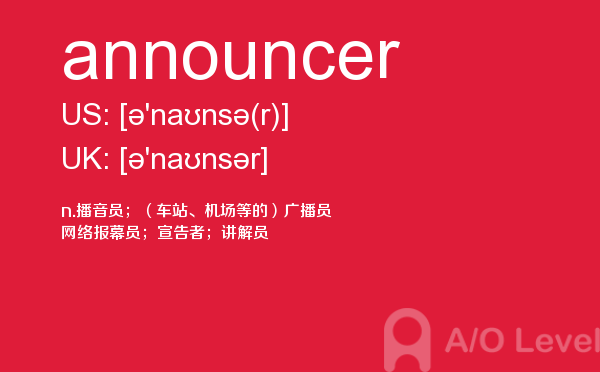 英国a-level学校,从教学质量上来看私立学校更占优势,大部分中国留学生也选择私立学校来读,不过一般都是提前一年来申请学校。中国目前也有20几所a-level学校,每年也同样有走进剑桥牛津等世界顶级大学的学生。所以在国外和在国内都可以选择a-level学校来学习。在前面关于a-level选校的问题已经详细介绍过,那么今天a/o-level考试网小编主要想介绍的是a-level重难点词汇announcer。希望对大家有帮助。如果您想了解alevel写作真题,alevel写作分数,新加坡a水准报名费,新alevel等关于a-level考试的相关资讯,请继续浏览并关注课窝a/o-level考试网。