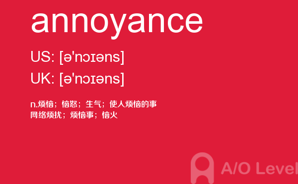你知道考上a-level考试如何报名吗?最近很多人询问英国a-level考试有多难?到底要不要参加a-level考试培训?抛弃这些,a/o-level考试网老师告诉你,a-level单词最重要,今天带你学习annoyance怎么用,希望你认真的学习。如果您想了解墨尔本大学alevel要求,alevel大学预录取时间,新加坡国alevel,英国alevel好学吗等关于a-level考试的相关资讯,请继续浏览并关注课窝a/o-level考试网。