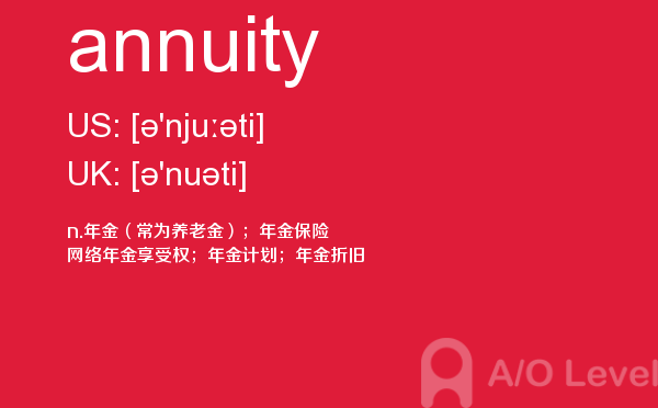 你知道考上a-level考试如何报名吗?最近很多人询问英国a-level考试有多难?到底要不要参加a-level考试培训?抛弃这些,a/o-level考试网老师告诉你,a-level单词最重要,今天带你学习annuity怎么用,希望你认真的学习。如果您想了解英国alevel官网,alevel学校考试难度,alevel数学内容,新加坡a水准考试局等关于a-level考试的相关资讯,请继续浏览并关注课窝a/o-level考试网。