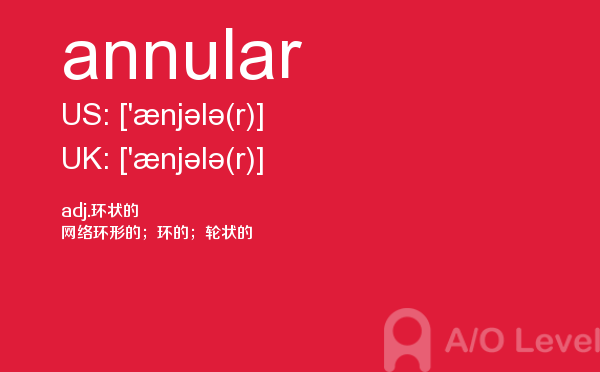 英国留学考试a-level考试考什么?a-level考试题型一定要注意积累和总结。课窝a/o-level考试网小编每天会给大家带来a-level考试的相关资讯,今天带来a-level单词annular的解析,希望大家认真的积累a-level考试词汇。如果您想了解alevel学校条件,alevel课程介绍,a水准考试预备班,alevel网上报名等关于a-level考试的相关资讯,请继续浏览并关注课窝a/o-level考试网。