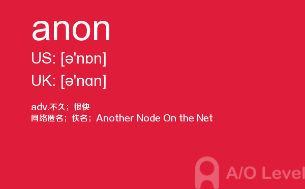 随著学生的素质提升,各大a-level课程培训班的师资和英国a-level题库也不断的完善,近年来学生考出来a-level分数也不断上涨。但是去英国留学,对英国留学资讯和英国的a-level考试资讯都是需要了解的,下面一起跟着a/o-level考试网来看看a-level词汇之anon的详细介绍。如果您想了解新加坡a水准预科,查询alevel考试报名信息2018,alevel化学提纲,alevel考试介绍等关于a-level考试的相关资讯,请继续浏览并关注课窝a/o-level考试网。