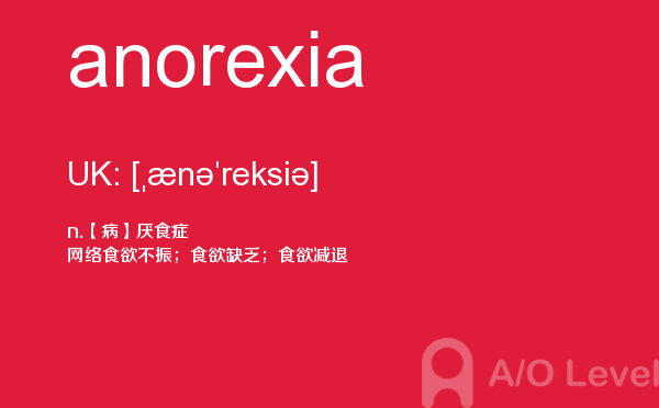 a-level 的考试将由所属的考试委员会分别于每年5-6月和10-11月在全球统一组织,成绩分别在8月和次年2月公布。关于a-level考试时间的具体内容,alevel考试网前面详细介绍过,大家可以查找alevel考试网前面的a-level考试资讯,alevel考试网每天会更新大量的alevel考试资讯,本篇要给大家介绍a-level单词anorexia的全面介绍。如果您想了解alevel培训哪家好,剑桥alevel课程,新加坡a水准,alevel真题试卷等关于a-level考试的相关资讯,请继续浏览并关注课窝a/o-level考试网。