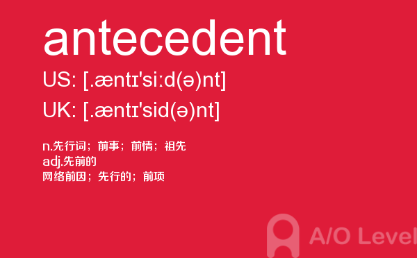 英国高中课程(a-level)的学制为两年:第一年称为as水准,学生通常选择自己最擅长且最有兴趣的3—4门课,通过考试后获得as证书。第二年称为a2水准,学生可选择as水准中优秀的3门课继续学习,通过考试后获得a-level证书。关于a-level学制相信大家肯定有一定的了解,今天alevel考试网想要带大家了解的并不是a-level学制的问题,想要介绍的是a-level重难点单词antecedent,希望对大家有帮助。如果您想了解alevel课程选课,考alevel多少钱,上海alevel辅导哪家好,alevel经济考试原题等关于a-level考试的相关资讯,请继续浏览并关注课窝a/o-level考试网。