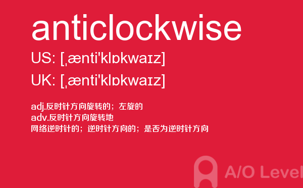 英国高中课程(a-level)的学制为两年:第一年称为as水准,学生通常选择自己最擅长且最有兴趣的3—4门课,通过考试后获得as证书。第二年称为a2水准,学生可选择as水准中优秀的3门课继续学习,通过考试后获得a-level证书。关于a-level学制相信大家肯定有一定的了解,今天alevel考试网想要带大家了解的并不是a-level学制的问题,想要介绍的是a-level重难点单词anticlockwise,希望对大家有帮助。如果您想了解在线alevel课程,alevel数学,alevel课程价格,alevel词汇量等关于a-level考试的相关资讯,请继续浏览并关注课窝a/o-level考试网。