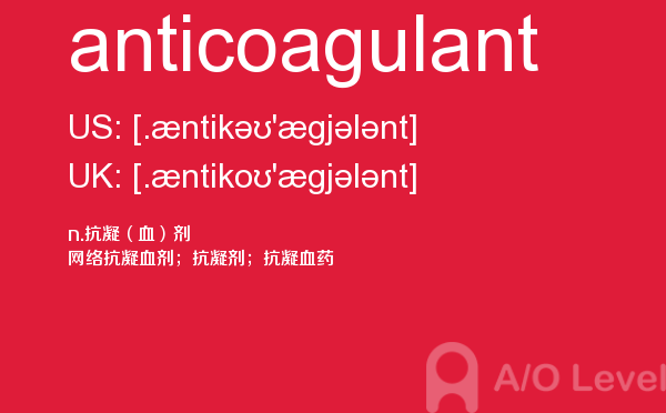 a-level的成绩分为a、b、c、d、e、u六个等级,a为最优,e为通过,u为不及格。如果学生对某门课的成绩不满意,可以选择重考,最终成绩以最好的一次为准。那么a-level考试想要取得a-level高分大家需要做到哪些呢?a/o-level考试网给大家带来的很多a-level考试经验,alevel考试技巧等等,想要考好a-level考试,不仅要知道这些,对于关于a-level考试的所有资讯都需要了解,最重点的是a-level词汇量的积累,今天a/o-level考试网就给大家带来的a-level的考试单词anticoagulant的全面解析。如果您想了解alevel生物,alevel考试报名时间,考alevel多少钱,alevel阅读技巧等关于a-level考试的相关资讯,请继续浏览并关注课窝a/o-level考试网。