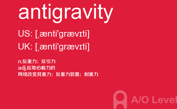 英国a-level考试报名费很好解决,那怎样才能达到a-level考试词汇量要求呢?别再纠结于a-level考试分数要求了,今天我们来一起看看a/o-level考试网今天带给你的a-level单词antigravity的讲解。如果您想了解a水准考试难度,高考完新加坡a水准,奥克兰大学alevel,alevel考试科目体育等关于a-level考试的相关资讯,请继续浏览并关注课窝a/o-level考试网。
