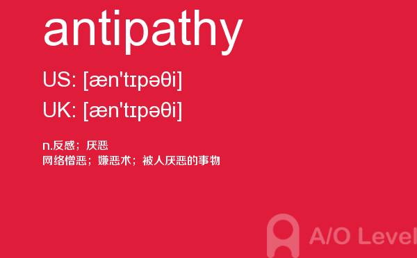 a-level考试报名须知是必须要懂得,这样在面对英国a-level入学考试的时候自己也知道应该怎么面对。为了提高考生们的a-level模拟考卷成绩,a/o-level考试网会经常给大家带来a-level考试资讯,下面就是今天课窝a/o-level考试网小编给大家讲解关于a-level考试词汇antipathy怎么用。如果您想了解国内alevel学校,alevel考试报名网,alevel经济难不难,alevel考试官方网站等关于a-level考试的相关资讯,请继续浏览并关注课窝a/o-level考试网。