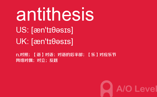 英国a-level考试是英国留学生去英国留学需要参加的考试,很多考生担心a-level考试分数要求高,英国a-level考试难度大,别担心,只要认真的学习a-level考试内容,小编相信大家一定能够考得a-level高分。今天a/o-level考试网给大家带来单词antithesis的全面解析。如果您想了解alevel经济教材,alevel中文书目,alevel中文口语,a水准考试预备班怎么样等关于a-level考试的相关资讯,请继续浏览并关注课窝a/o-level考试网。
