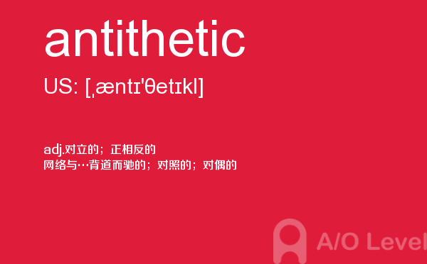 虽然英国a-level院校招生官常把“成绩不是决定录取与否的唯一因素”挂在嘴边,但不得不承认,a-level分数是学生优秀与否的有力证据,取得a-level成绩高分是肯定是优先考虑的。放松一下,先跟着a/o-level考试网来看看今天小编带来的是a-level单词antithetic的介绍。如果您想了解新加坡国立大学a水准,中国alevel考试,alevel怎么考试,国际高中的课程alevel等关于a-level考试的相关资讯,请继续浏览并关注课窝a/o-level考试网。