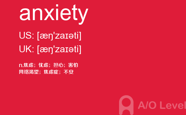 a-level 的考试将由所属的考试委员会分别于每年5-6月和10-11月在全球统一组织,成绩分别在8月和次年2月公布。关于a-level考试时间的具体内容,alevel考试网前面详细介绍过,大家可以查找alevel考试网前面的a-level考试资讯,alevel考试网每天会更新大量的alevel考试资讯,本篇要给大家介绍a-level单词anxiety的全面介绍。如果您想了解alevel课程如何升大学,alevel零基础,a水准物理专业术语,上海alevel排名等关于a-level考试的相关资讯,请继续浏览并关注课窝a/o-level考试网。