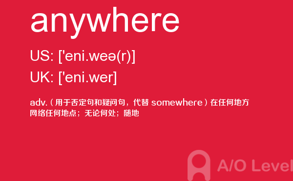 英国的大多数中学开设的alevel课程科目相当广泛,有文科、商科、经济、语言、数学、理科、计算、法律、媒体、音乐等。学生的alevel考试成绩及其所选修的a-level课程在很大程度上决定着能否进入理想的大学和学习所选择的学位课程。关于alevel考试alevel考试网会给大家带来和a-level考试相关的资讯,下面带来的是单词anywhere的介绍,会对大家的a-level考试成绩有帮助。如果您想了解新加坡a水准难度,alevel化学还原氧化知识点,爱德思alevel申请大学,悉尼大学alevel要求等关于a-level考试的相关资讯,请继续浏览并关注课窝a/o-level考试网。