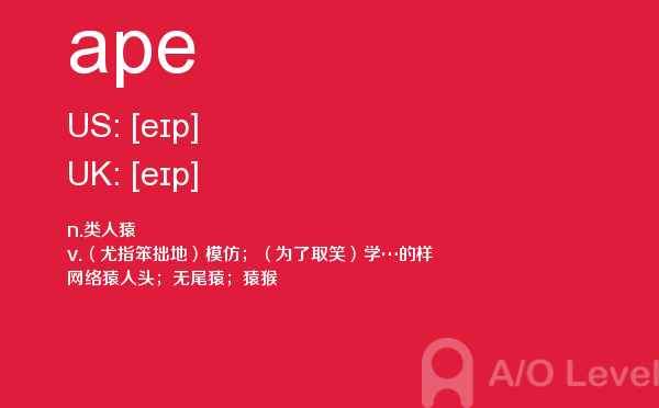 英国留学考试a-level考试考什么?a-level考试题型一定要注意积累和总结。课窝a/o-level考试网小编每天会给大家带来a-level考试的相关资讯,今天带来a-level单词ape的解析,希望大家认真的积累a-level考试词汇。如果您想了解alevel国际班,alevel入学考试,alevel考试地点,alevel考试辅导等关于a-level考试的相关资讯,请继续浏览并关注课窝a/o-level考试网。
