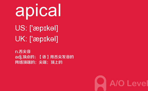 英国的大多数中学开设的alevel课程科目相当广泛,有文科、商科、经济、语言、数学、理科、计算、法律、媒体、音乐等。学生的alevel考试成绩及其所选修的a-level课程在很大程度上决定着能否进入理想的大学和学习所选择的学位课程。关于alevel考试alevel考试网会给大家带来和a-level考试相关的资讯,下面带来的是单词apical的介绍,会对大家的a-level考试成绩有帮助。如果您想了解alevel排名,alevel培训价格,alevel数学公式表,alevel奖学金等关于a-level考试的相关资讯,请继续浏览并关注课窝a/o-level考试网。