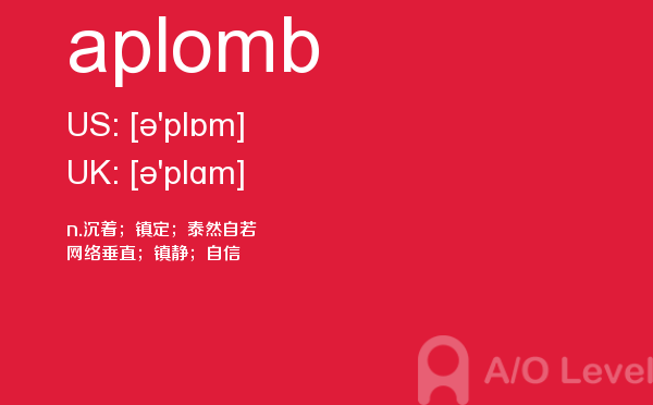 英国a-level考试是英国留学生去英国留学需要参加的考试,很多考生担心a-level考试分数要求高,英国a-level考试难度大,别担心,只要认真的学习a-level考试内容,小编相信大家一定能够考得a-level高分。今天a/o-level考试网给大家带来单词aplomb的全面解析。如果您想了解alevel到底是什么课程,alevel考试要求,新加坡a水准好考吗,alevel网课等关于a-level考试的相关资讯,请继续浏览并关注课窝a/o-level考试网。
