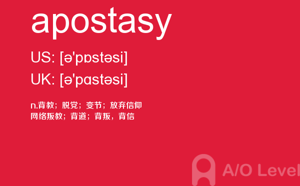 英国留学考试a-level考试考什么?a-level考试题型一定要注意积累和总结。课窝a/o-level考试网小编每天会给大家带来a-level考试的相关资讯,今天带来a-level单词apostasy的解析,希望大家认真的积累a-level考试词汇。如果您想了解爱德思alevel答案,alevel英语词汇,alevel物理,alevel考试报名网站等关于a-level考试的相关资讯,请继续浏览并关注课窝a/o-level考试网。