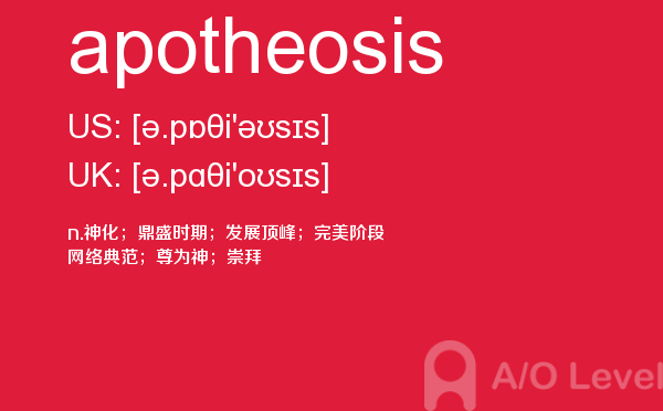 课窝a/o-level考试网上提供了许多信息可以供考生们参考,比如考生需要在此网站报名,打印准考证,或者搜寻与英国a-level考试内容相关的资料等等。考生如果想在短时间内,迅速掌握a-level考试资讯,就需要合理运用此网站的信息。今天带来的是a-level考试词汇之apotheosis的详细介绍。如果您想了解alevel词汇书,alevel数学内容,alevel物理复习,alevel中文口语考试等关于a-level考试的相关资讯,请继续浏览并关注课窝a/o-level考试网。