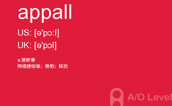 课窝a/o-level考试网上提供了许多信息可以供考生们参考,比如考生需要在此网站报名,打印准考证,或者搜寻与英国a-level考试内容相关的资料等等。考生如果想在短时间内,迅速掌握a-level考试资讯,就需要合理运用此网站的信息。今天带来的是a-level考试词汇之appall的详细介绍。如果您想了解alevel数学教材,新加坡a水准预备班,alevel简介,英国中学alevel排名等关于a-level考试的相关资讯,请继续浏览并关注课窝a/o-level考试网。