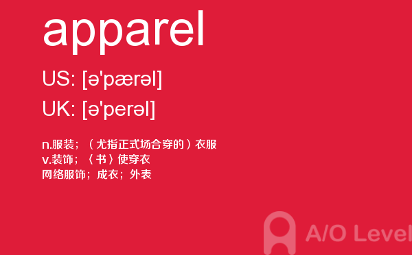 英国留学对于留学成绩的比拼越来越激烈,申请英国院校留学的一大指标a-level考试分数要求也水涨船高.虽然成绩只是申请的一部分,但不得不说,好看的英国a-level成绩是学生是否优秀的证据。放松一下跟着a/o-level考试网来学习一下a-level考试词汇apparel的应用。如果您想了解alevel考试的内容,alevel数学教材有几本书,alevel数学分几种,新加坡a水准预科等关于a-level考试的相关资讯,请继续浏览并关注课窝a/o-level考试网。