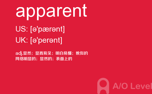 英国a-level考试是英国留学生去英国留学需要参加的考试,很多考生担心a-level考试分数要求高,英国a-level考试难度大,别担心,只要认真的学习a-level考试内容,小编相信大家一定能够考得a-level高分。今天a/o-level考试网给大家带来单词apparent的全面解析。如果您想了解alevel数学公式表,alevel申请,alevel学校,英国alevel学校排名等关于a-level考试的相关资讯,请继续浏览并关注课窝a/o-level考试网。