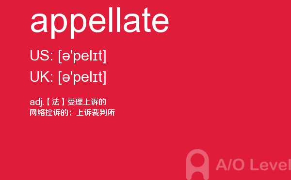 英国的大多数中学开设的alevel课程科目相当广泛,有文科、商科、经济、语言、数学、理科、计算、法律、媒体、音乐等。学生的alevel考试成绩及其所选修的a-level课程在很大程度上决定着能否进入理想的大学和学习所选择的学位课程。关于alevel考试alevel考试网会给大家带来和a-level考试相关的资讯,下面带来的是单词appellate的介绍,会对大家的a-level考试成绩有帮助。如果您想了解alevel排名,alevel培训价格,alevel数学公式表,alevel奖学金等关于a-level考试的相关资讯,请继续浏览并关注课窝a/o-level考试网。