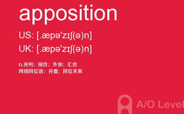 现在申请英国院校的中国孩子非常多,几乎每一个学生都在为一种叫做英国a-level的考试而努力着。a/o-level考试网老师为大家解析a-level考试重难点单词apposition,大家认真学习,会有帮助。如果您想了解alevel作用,alevel考试中心英国,alevel咨询中心,香港大学alevel成绩申请等关于a-level考试的相关资讯,请继续浏览并关注课窝a/o-level考试网。
