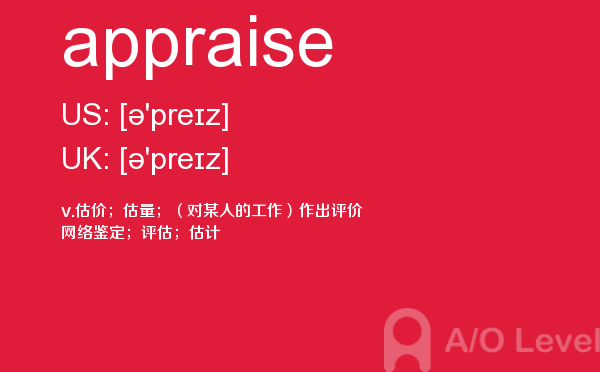 随著学生的素质提升,各大a-level课程培训班的师资和英国a-level题库也不断的完善,近年来学生考出来a-level分数也不断上涨。但是去英国留学,对英国留学资讯和英国的a-level考试资讯都是需要了解的,下面一起跟着a/o-level考试网来看看a-level词汇之appraise的详细介绍。如果您想了解在线alevel辅导,alevel时间,alevel写作,alevel化学知识点等关于a-level考试的相关资讯,请继续浏览并关注课窝a/o-level考试网。