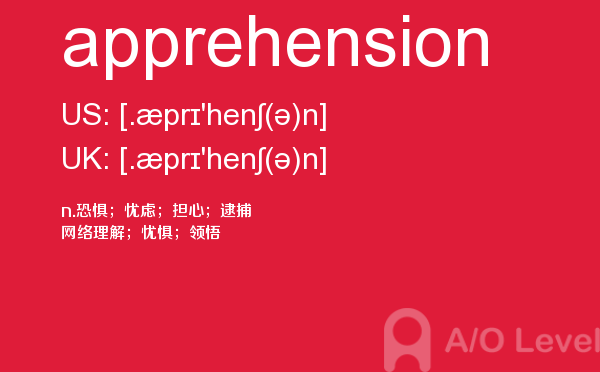 a-level 的考试将由所属的考试委员会分别于每年5-6月和10-11月在全球统一组织,成绩分别在8月和次年2月公布。关于a-level考试时间的具体内容,alevel考试网前面详细介绍过,大家可以查找alevel考试网前面的a-level考试资讯,alevel考试网每天会更新大量的alevel考试资讯,本篇要给大家介绍a-level单词apprehension的全面介绍。如果您想了解alevel数学公式表,alevel经济学教材目录,alevel物理复习,国际高中的课程alevel等关于a-level考试的相关资讯,请继续浏览并关注课窝a/o-level考试网。