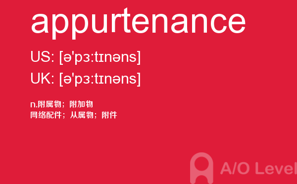 虽然英国a-level院校招生官常把“成绩不是决定录取与否的唯一因素”挂在嘴边,但不得不承认,a-level分数是学生优秀与否的有力证据,取得a-level成绩高分是肯定是优先考虑的。放松一下,先跟着a/o-level考试网来看看今天小编带来的是a-level单词appurtenance的介绍。如果您想了解alevel考试指南,alevel课程有年龄限制,alevel真题下载,英国alevel考试试卷等关于a-level考试的相关资讯,请继续浏览并关注课窝a/o-level考试网。