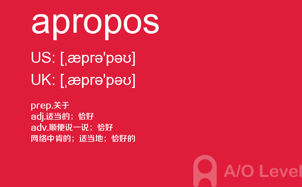 英国留学考试a-level考试考什么?a-level考试题型一定要注意积累和总结。课窝a/o-level考试网小编每天会给大家带来a-level考试的相关资讯,今天带来a-level单词apropos的解析,希望大家认真的积累a-level考试词汇。如果您想了解alevel词汇表,alevel生物难度,申请新加坡a水准,alevel作文等关于a-level考试的相关资讯,请继续浏览并关注课窝a/o-level考试网。