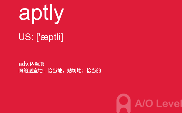 a-level(general certificate of education advanced level ),英国高中课程,是英国全民课程体系,是英国普通中等教育证书考试高级水平课程,也是英国学生的大学入学考试课程。今天alevel考试网小编给大家带来的alevel考试单词aptly的详细介绍。希望大家能够认真的阅读。如果您想了解港大alevel申请条件,alevel中国大学,alevel成绩申请港大,alevel经济教材电子版等关于a-level考试的相关资讯,请继续浏览并关注课窝a/o-level考试网。