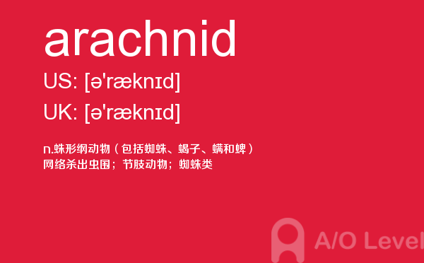 a-level词汇量受到的关注越来越高,很多家长担心a-level考试培训费用,a-level考试录取竞争会不会越来越激烈?这些问题在课窝a/o-level考试网小编都会给大家带来详细介绍,今天a/o-level考试网小编给大家带来的是在a-level考试中的重点词汇arachnid的详细介绍。如果您想了解自学alevel书籍,英国alevel真的很难吗,alevel生物教材,alevel报名等关于a-level考试的相关资讯,请继续浏览并关注课窝a/o-level考试网。