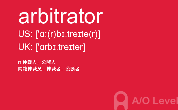 a-level课程证书被几乎所有英语授课的大学作为招收新生的入学标准。 在中国开设a-level课程旨在为中国学生提供进入国外大学的有效途径,具体目标为:培养在国内初高中成绩优秀的学生进入世界顶尖大学;培养在国内初高中成绩中等的学生进入世界一流大学;培养在国内初高中成绩一般的学生考取适合自己的大学。今天alevel考试网小编给大家详细解析a-level考试单词arbitrator。如果您想了解alevel经济学真题,a水准认可英联邦国家,查询alevel考试报名信息2018,alevel数学怎么选等关于a-level考试的相关资讯,请继续浏览并关注课窝a/o-level考试网。