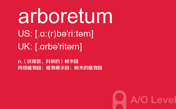 a-level课程适用于年龄在15—18之间,初中毕业以上的在校中学生或具有同等学历的职高生,通常国内a-level学校招收的是高二毕业的学生,并要求参加相关的入学考试,由于a-level课程包括教学及试卷习题等都是英文形式出现,所以这要求学生有较高的英文水平。对于a-level考试适用对象有初步了解之后,下面alevel考试网给大家带来的alevel考试中你需要重点记住的单词arboretum的详细介绍。如果您想了解alevel申请加拿大大学,alevel成绩申请港大,什么是alevel课程,alevel考试时间安排等关于a-level考试的相关资讯,请继续浏览并关注课窝a/o-level考试网。