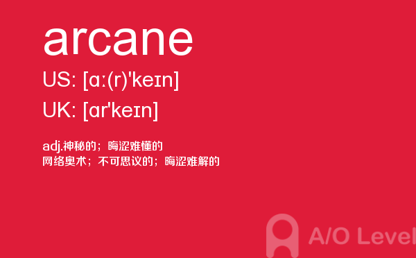 a- level课程一般在中国开设数学、进阶数学(或称高等数学)、物理、计算机学、会计学、商业学、经济学等课程供学生选择。那么关于alevel考生应该选哪些alevel课程呢?以后会给大家详细介绍,今天a/o-level考试网主要给大家全面介绍a-level词汇中的arcane单词。如果您想了解新加坡a水准难度,alevel化学还原氧化知识点,爱德思alevel申请大学,悉尼大学alevel要求等关于a-level考试的相关资讯,请继续浏览并关注课窝a/o-level考试网。
