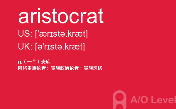 英国a-level考试报名费很好解决,那怎样才能达到a-level考试词汇量要求呢?别再纠结于a-level考试分数要求了,今天我们来一起看看a/o-level考试网今天带给你的a-level单词aristocrat的讲解。如果您想了解alevel经济学知识点,新加坡o水准a1多少分,alevel课程比较,alevel数学公式表等关于a-level考试的相关资讯,请继续浏览并关注课窝a/o-level考试网。